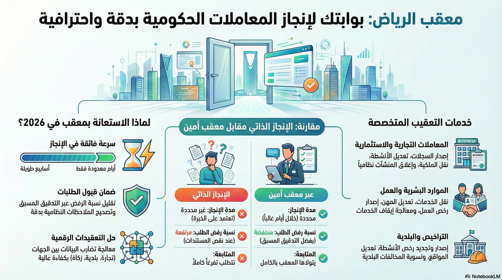 النتيجة أولاً: الاستعانة بـ معقب أمين في الرياض يختصر زمن إنجاز المعاملات الحكومية من أسابيع إلى أيام، ويقلل نسبة الرفض أو إعادة الطلبات بسبب الأخطاء الإجرائية. الخيار الأنسب لأصحاب المنشآت،...