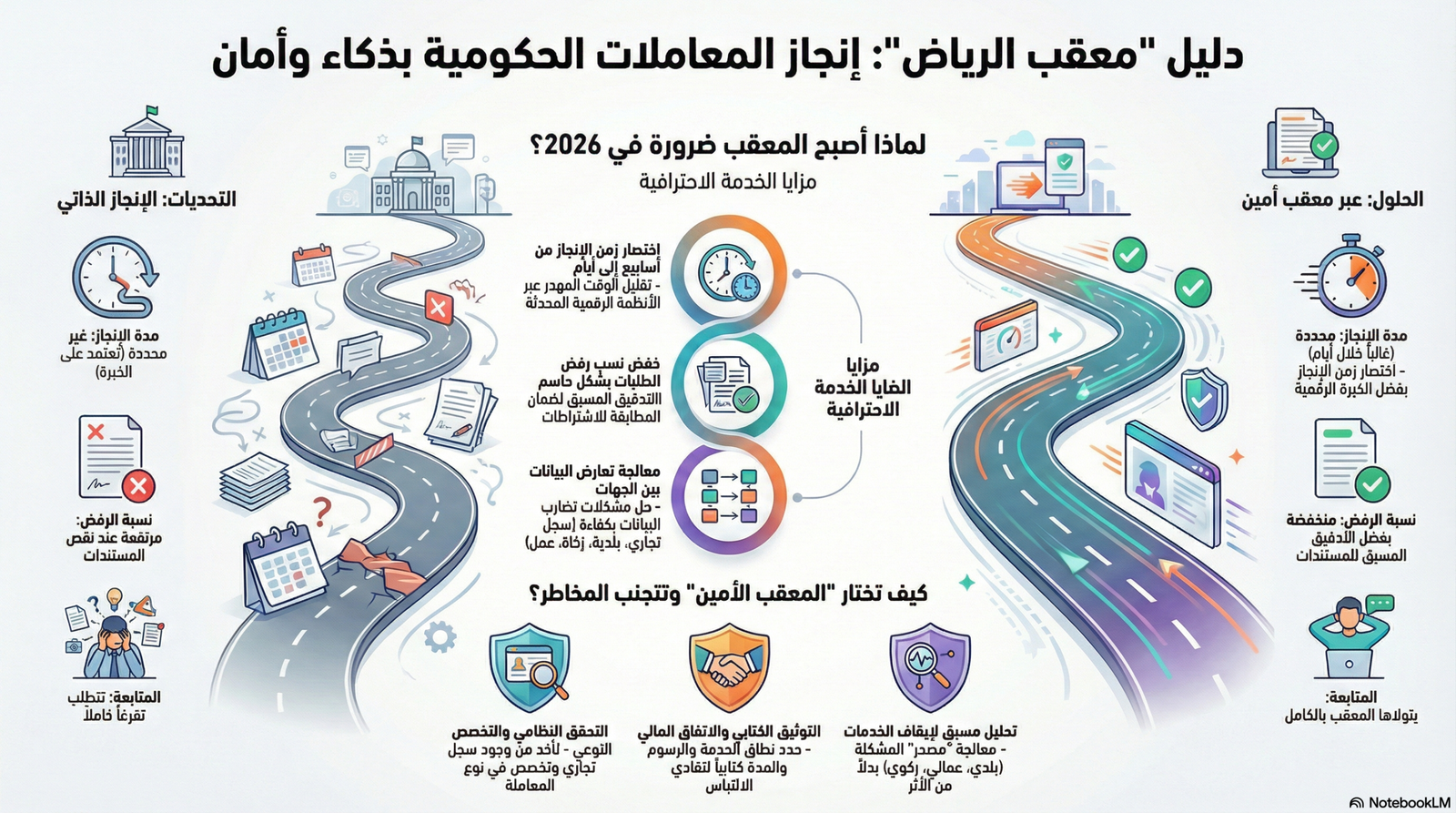 النتيجة أولاً: الاستعانة بـ معقب أمين في الرياض يختصر زمن إنجاز المعاملات الحكومية من أسابيع إلى أيام، ويقلل نسبة الرفض أو إعادة الطلبات بسبب الأخطاء الإجرائية. الخيار الأنسب لأصحاب المنشآت، المستثمرين، والمقيمين الذين يحتاجون إنجازاً دقيقاً ومتوافقاً مع أنظمة 2026 الرقمية.